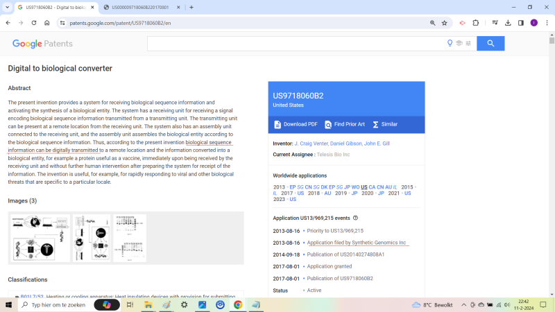 Biologische informatie kan digitaal verstuurd worden en eenmaal aangekomen weer omgezet worden in biologische info.