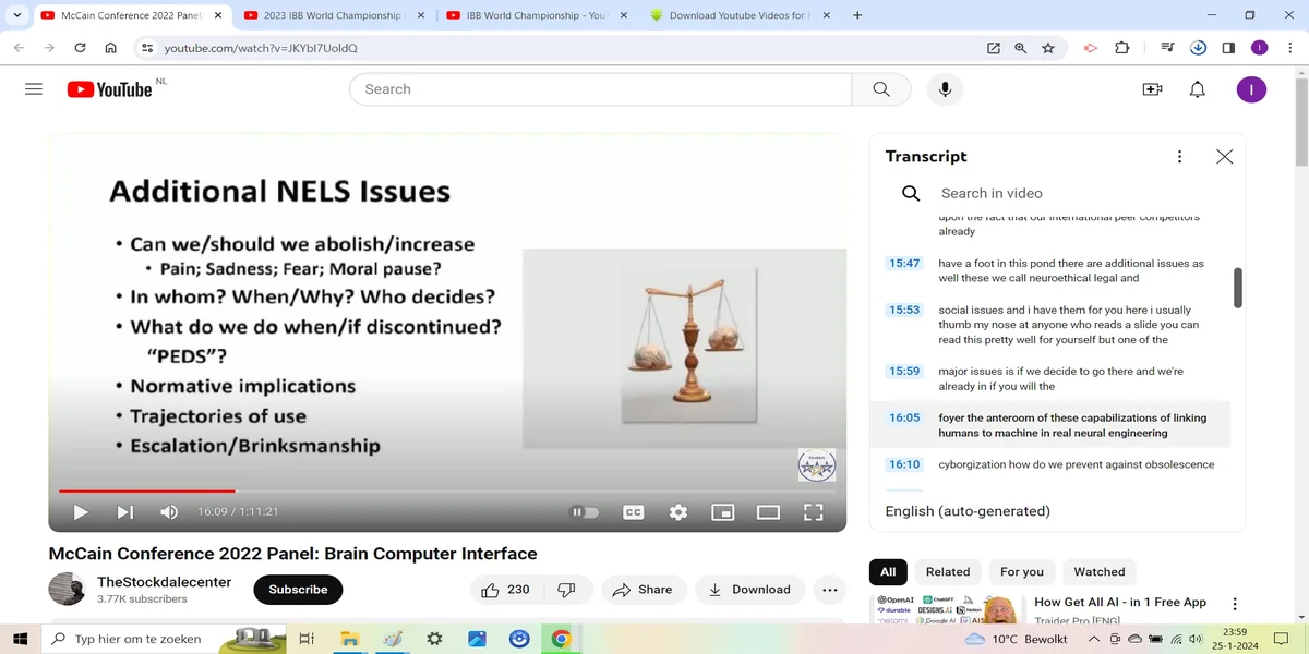 James Giordano is een arts die werkt voor de afdeling Biowarfare van het Amerikaanse leger, het Pentagon en het Human Brain Project van de EU. Hij spreekt openlijk over het feit dat Brain Computer Interfaces bestaan en wat je ermee kunt doen: het lezen van gedachten, het schrijven van gedachten naar de hersenen van iemand, het kunnen beïnvloeden van iemands gedrag en emoties op hetzelfde moment dus "live", dat je iemand dingen kunt laten doen tegen zijn zin in en hem er dan de herinnering aan ontnemen. Dat lichaamsfuncties overgenomen kunnen worden, dat je iemand een herseninfarct kunt bezorgen door nanobots bloedklonters te laten veroorzaken ("these can be weaponized"), dat gene editing/crispr ("optimization") van mensen al kan en ook gebeurt, enzovoort.