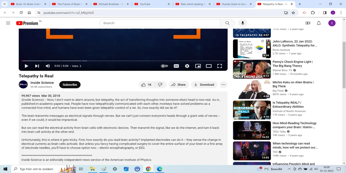 Hieronder een aantal video's over hoe gedachten gelezen kunnen worden en hersenen aan elkaar gekoppeld op grote afstand.