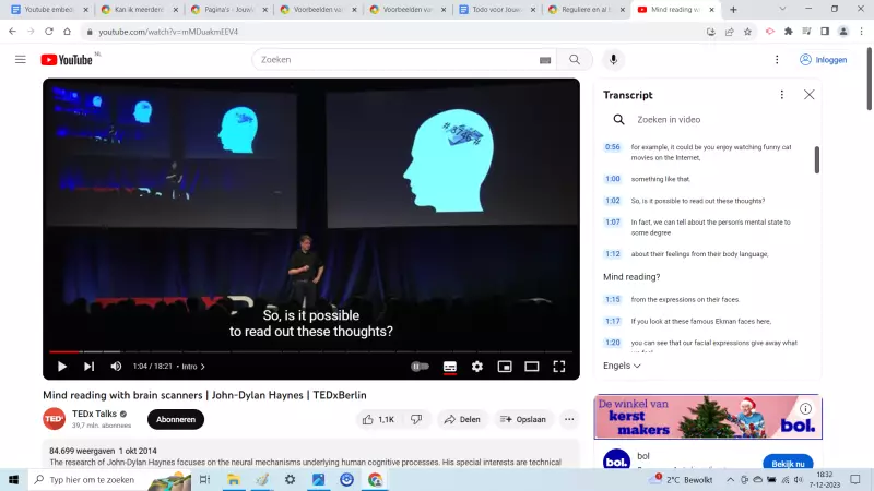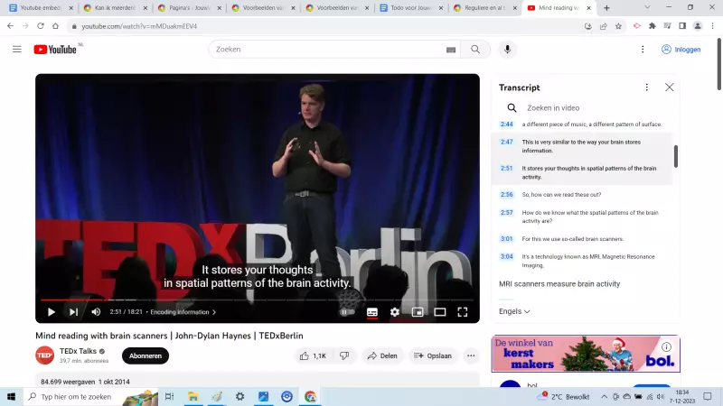 In deze video uit 2014 wordt beschreven hoe het mogelijk is gedachten te lezen bij iemand anders. Zie transcript rechtsboven en screenshot hieronder: